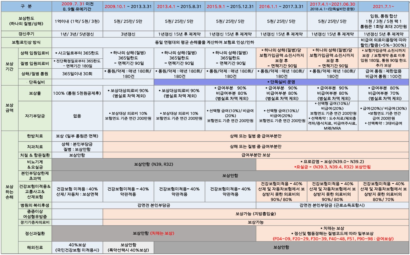 - 보험료가 매우 저렴했으나, 보험사의 부담이 너무 커서 현재 유지가 어렵게 됨